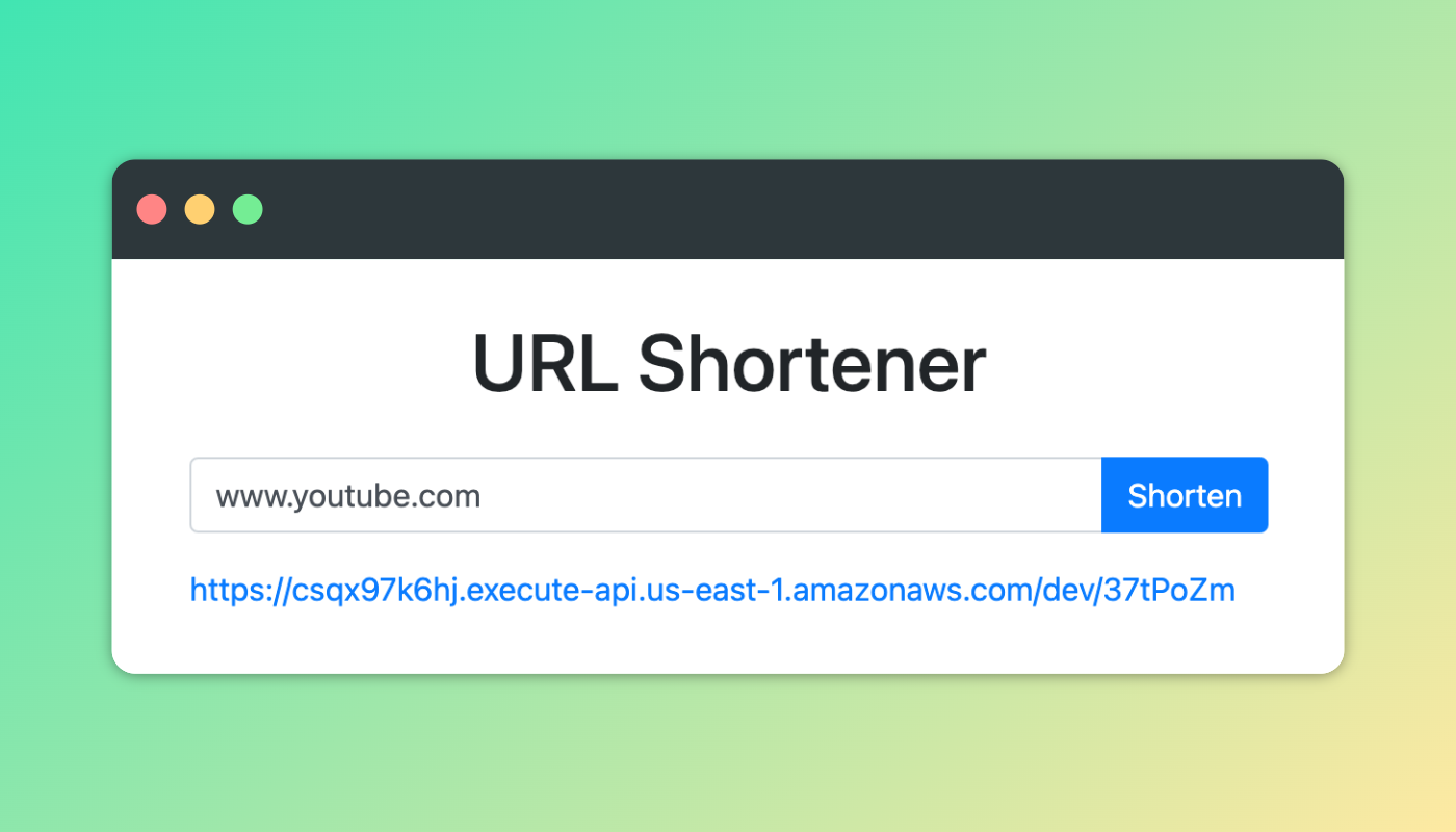 return urlJust like that, our lambdas are all ready! Although this is functional, to make this URL shortener an accessible service, we have to find a way to run our lambdas. There are several ways to consume lambda functions, but for this implementation we'll use the AWS API Gateway.