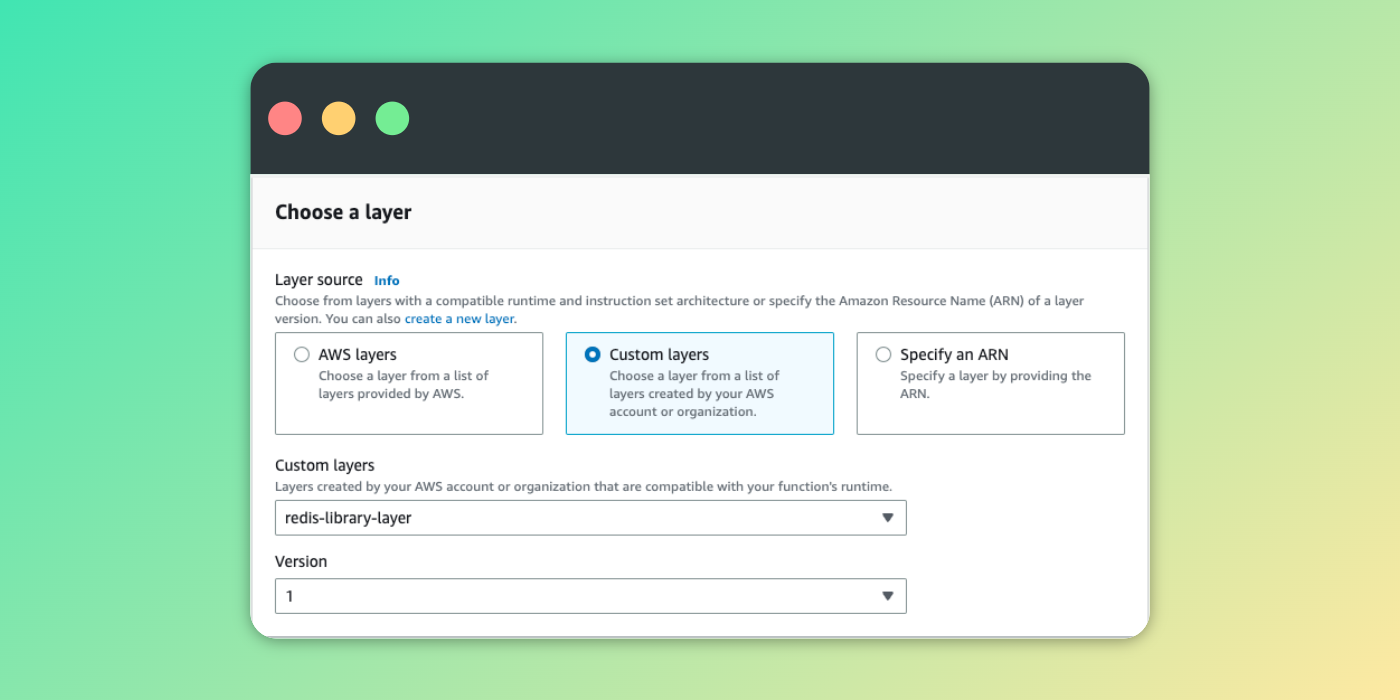 requirements-package.zipfile. (We may use theredis-library-layeragain, requirements are the same in this case.) - Adding the layer to the lambda function.