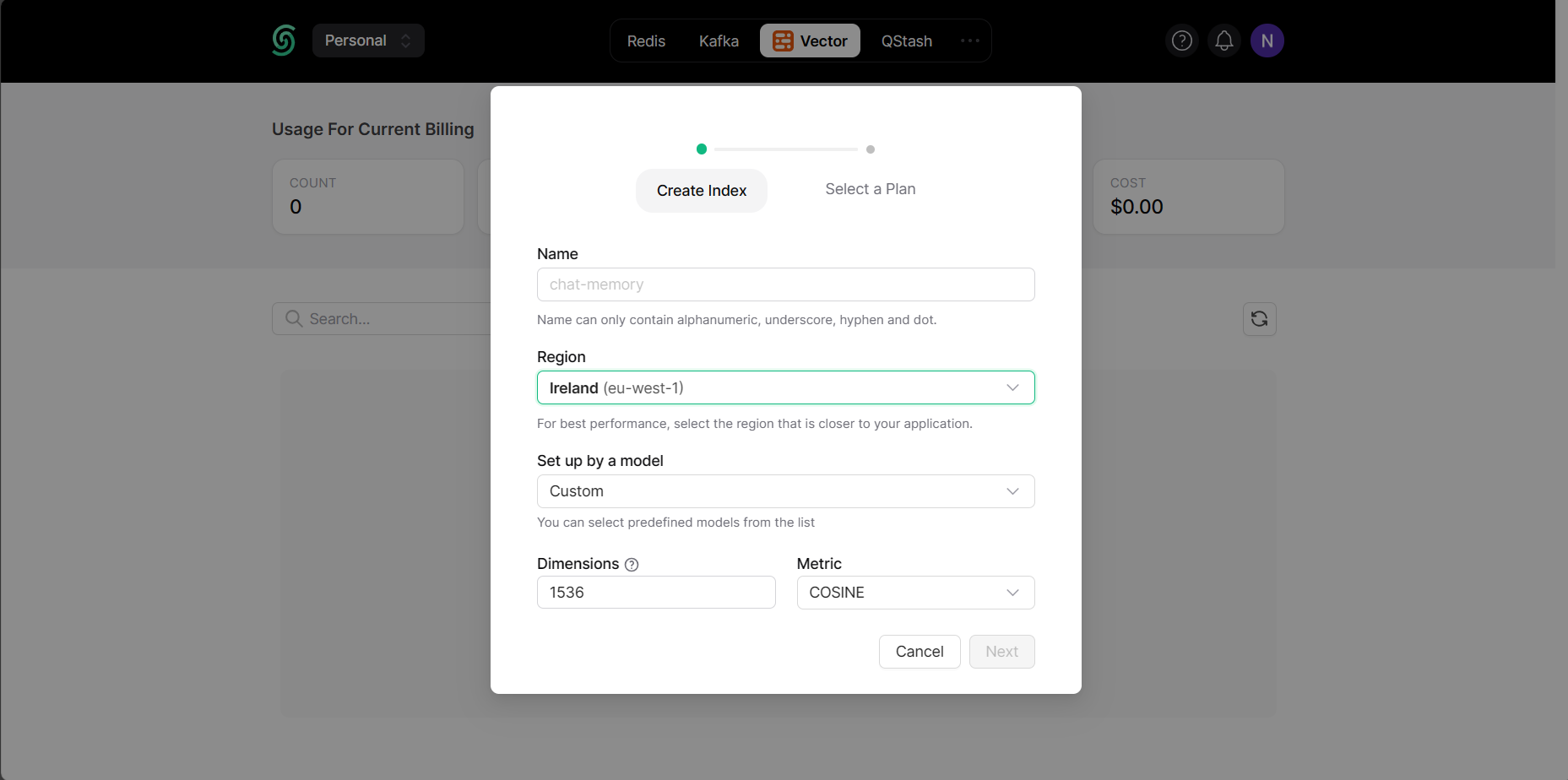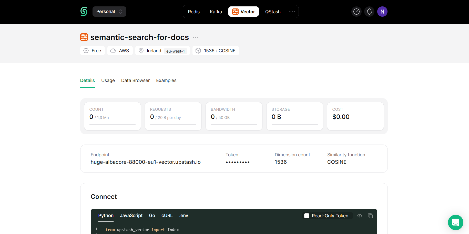 Set up Upstash Vector