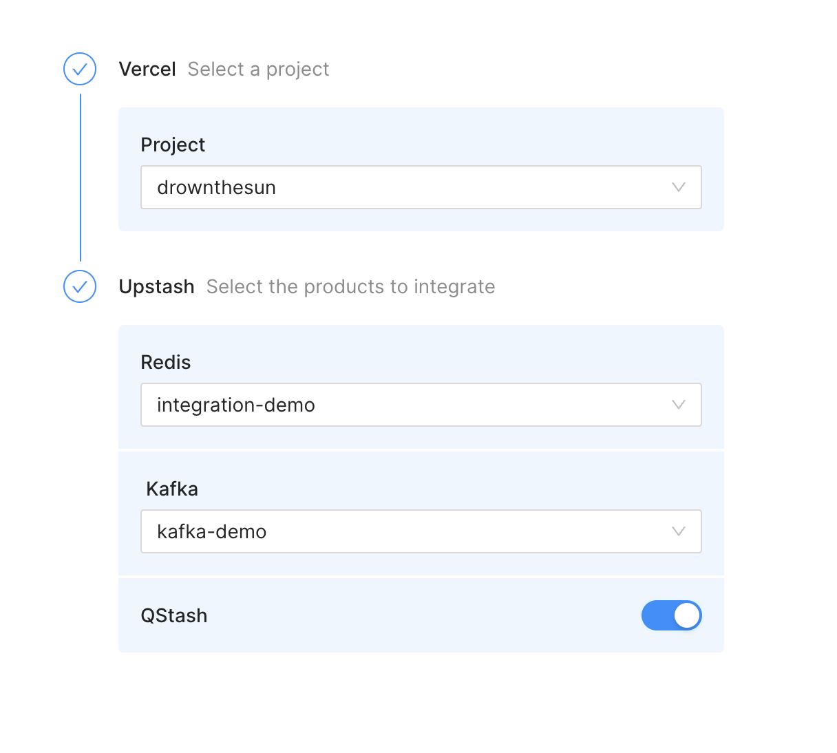 You can now select a Redis database and/or Kafka cluster as well as toggle QStash for your projects.
